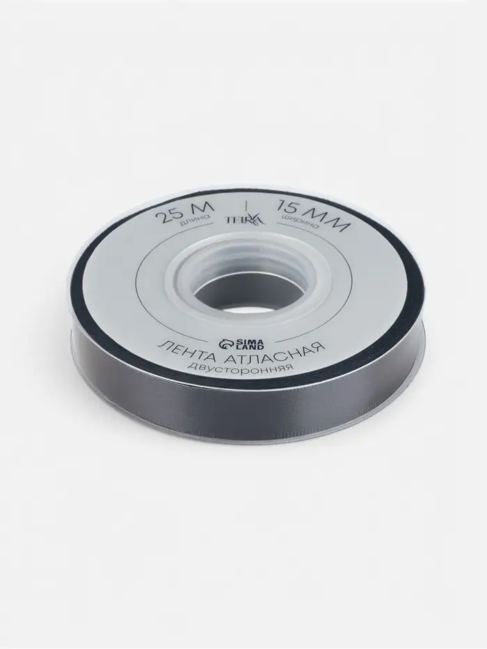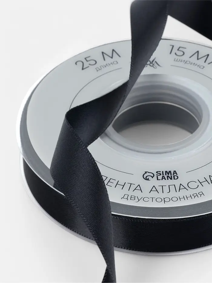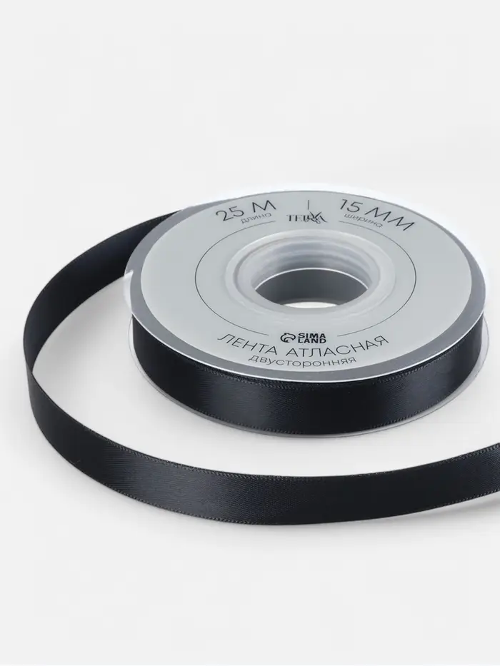 Лента атласная TEIRA, двухсторонняя, 15 мм, 25±1 м, чёрная №0030