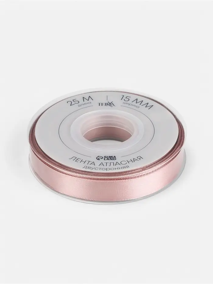 Лента атласная TEIRA, двухсторонняя, 15 мм, 25±1 м, нежно-розовая №164