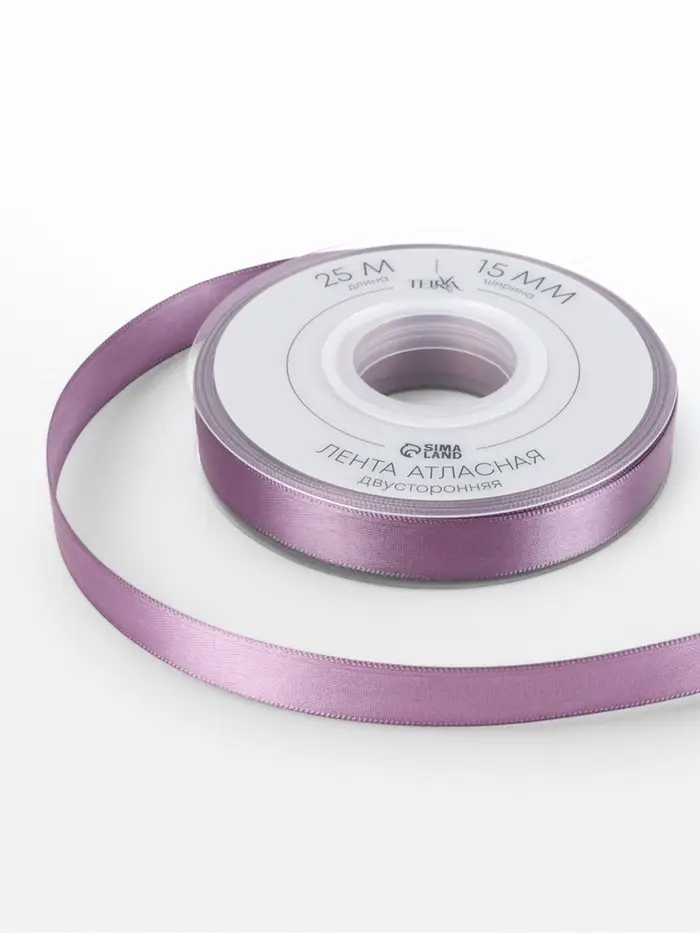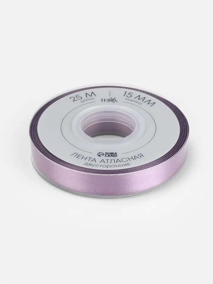 Лента атласная TEIRA, двухсторонняя, 15 мм, 25±1 м, сиреневая №0434