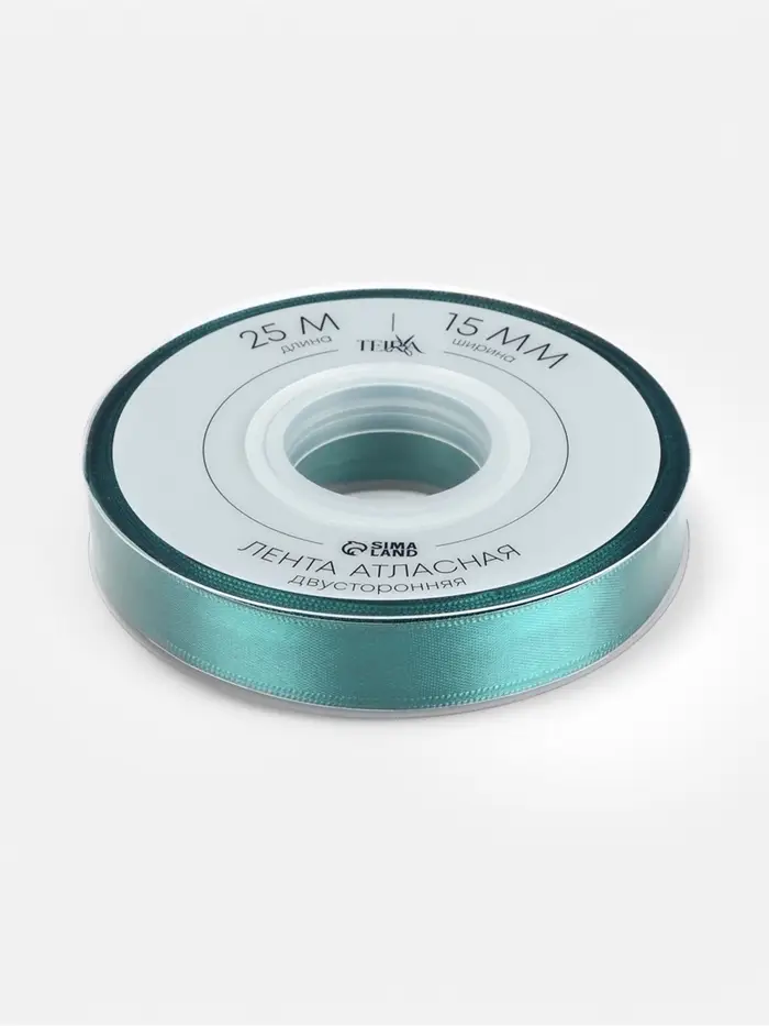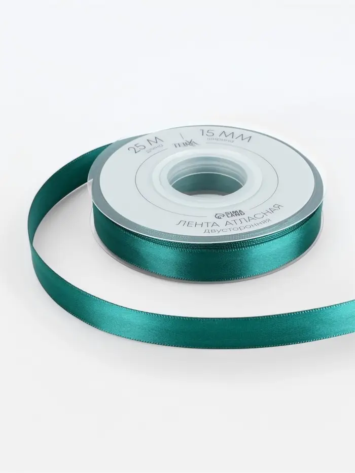 Лента атласная TEIRA, двухсторонняя, 15 мм, 25±1 м, зелёная №0589