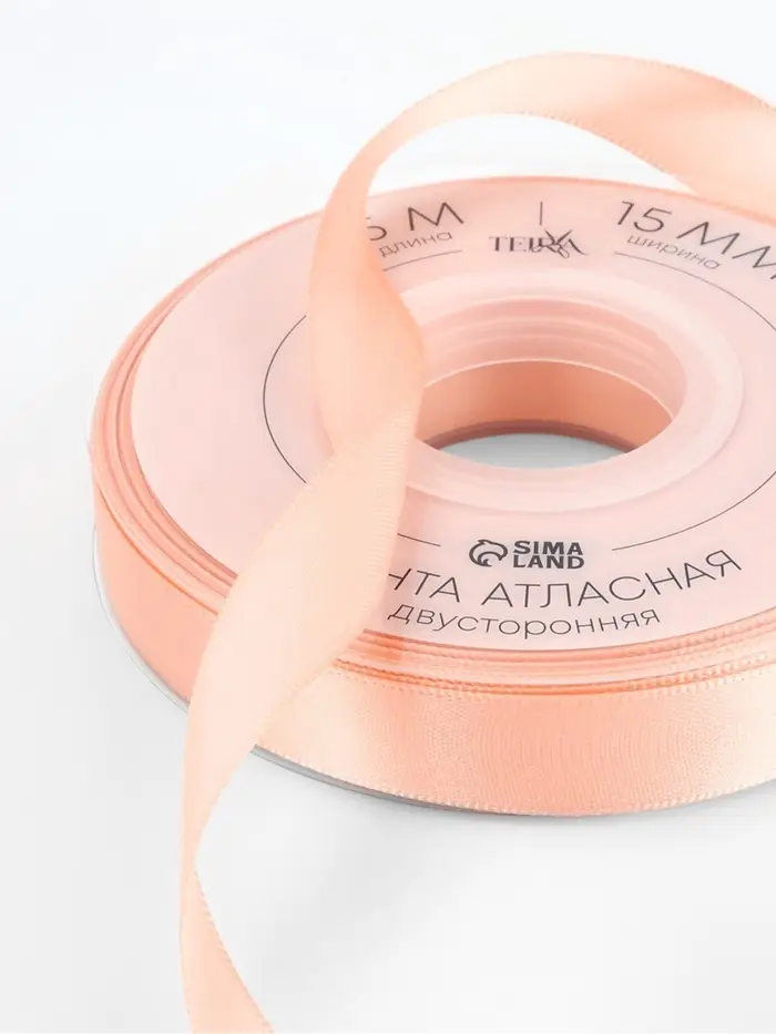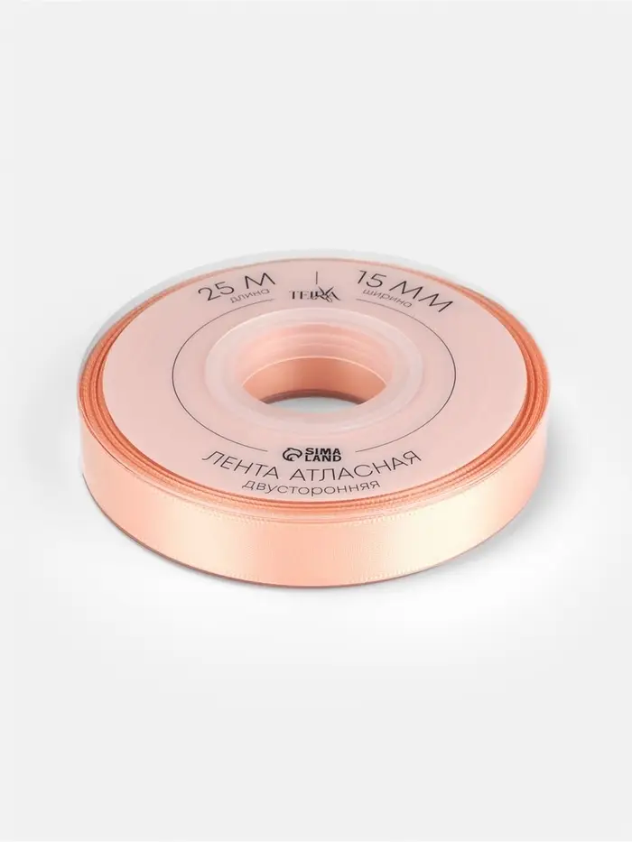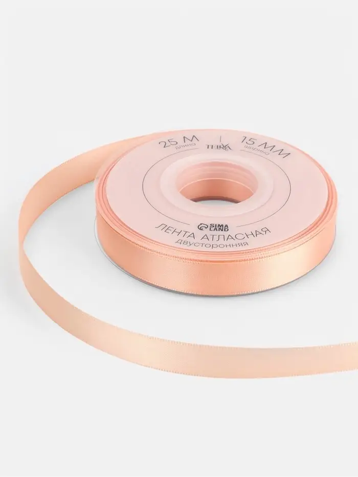 Лента атласная TEIRA, двухсторонняя, 15 мм, 25±1 м, бежевая №0714