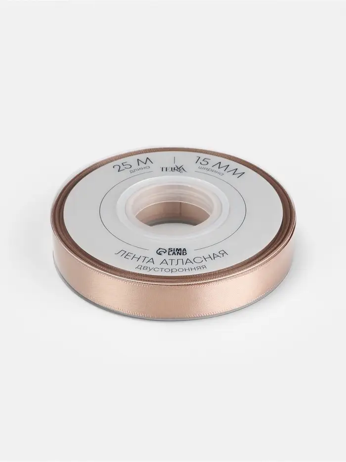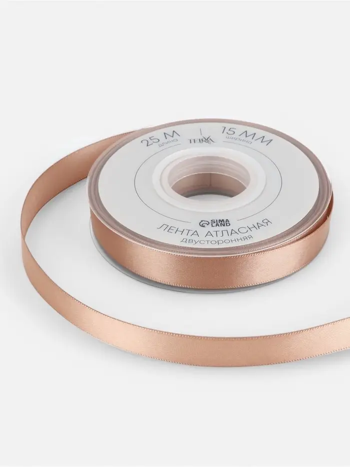 Лента атласная TEIRA, двухсторонняя, 15 мм, 25±1 м, бежевая №812