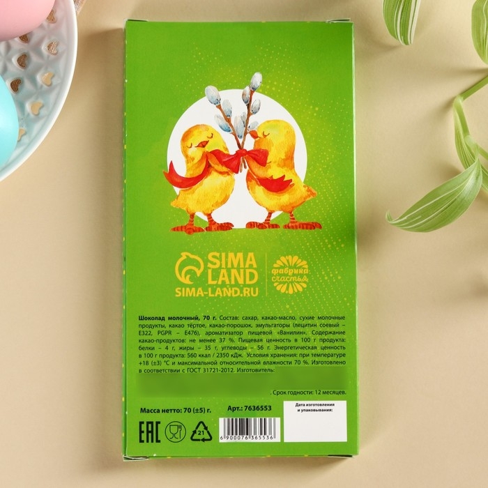 Шоколад «Светлой Пасхи!» молочный, 70 г.