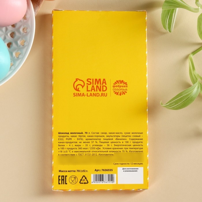 Шоколад «ХВ» молочный, пасха, 70 г.