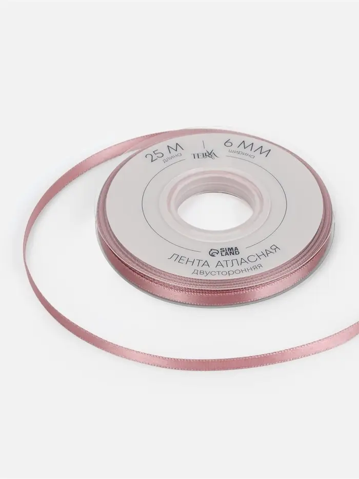 Лента атласная TEIRA, двухсторонняя, 6 мм, 25±1 м, розовая №164