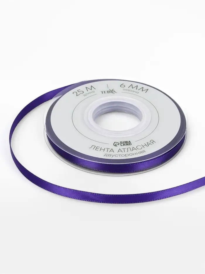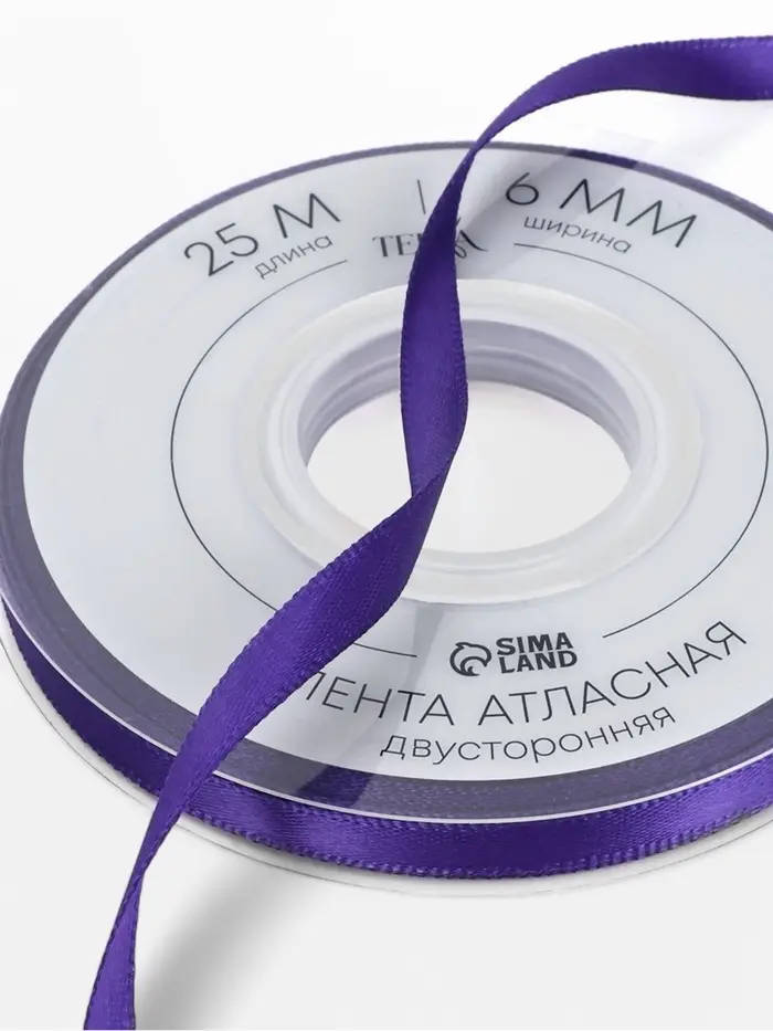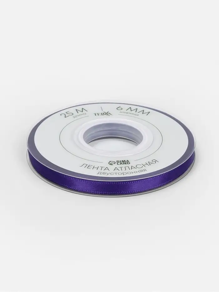 Лента атласная TEIRA, двухсторонняя, 6 мм, 25±1 м, фиолетовая №0470