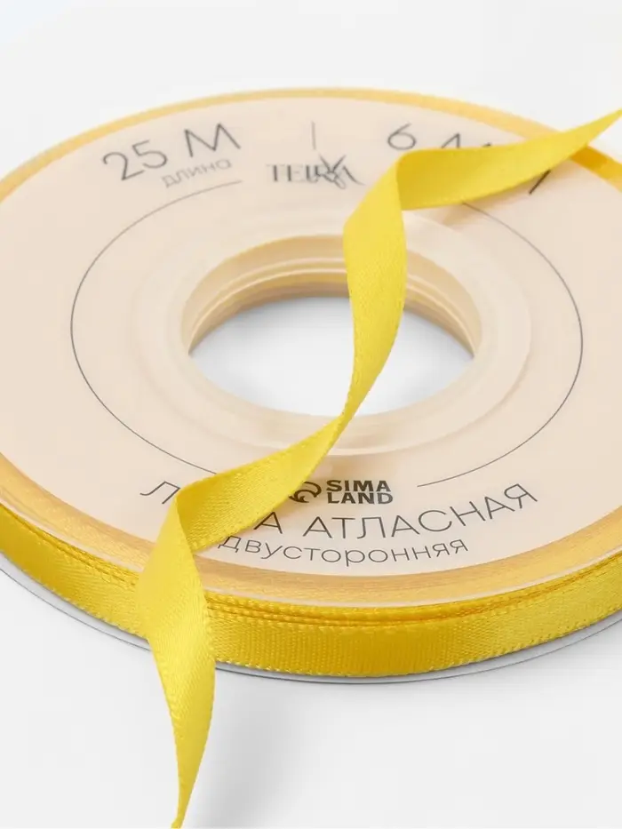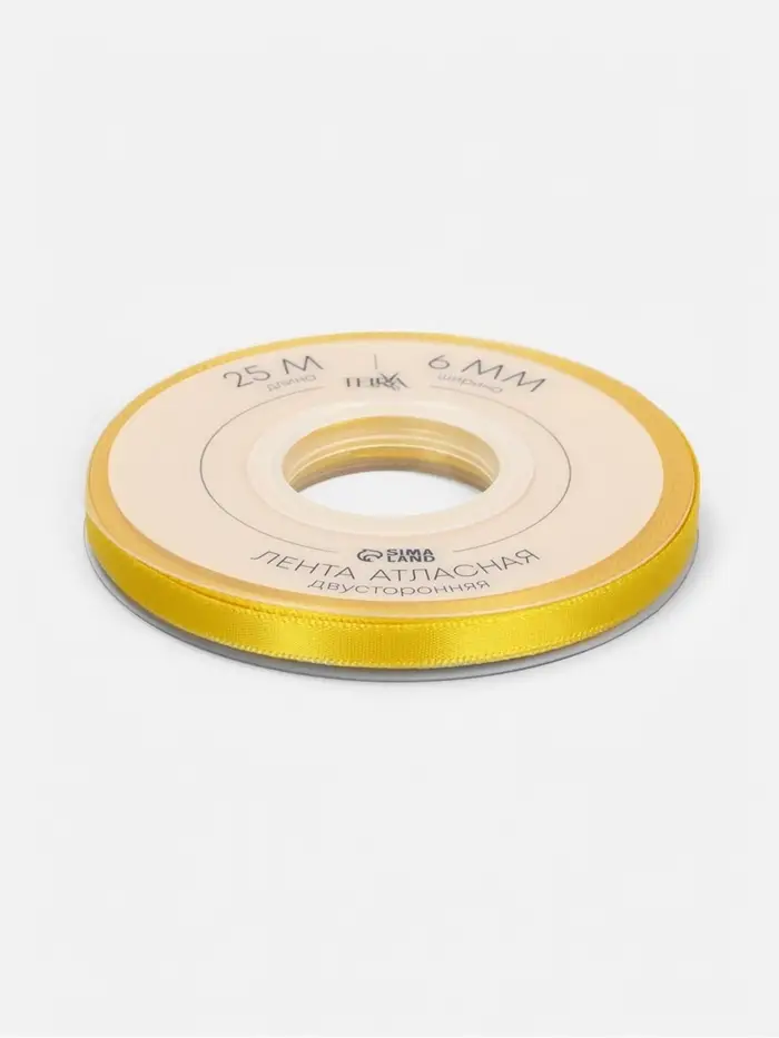 Лента атласная TEIRA, двухсторонняя, 6 мм, 25±1 м, жёлтая №0645