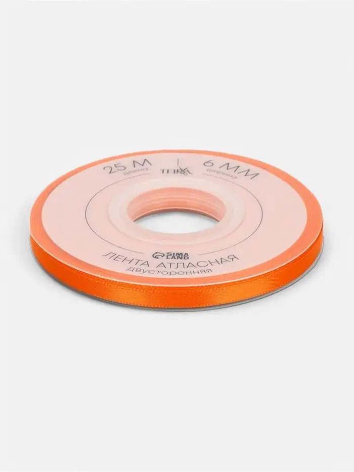 Лента атласная TEIRA, двухсторонняя, 6 мм, 25±1 м, оранжевая №751