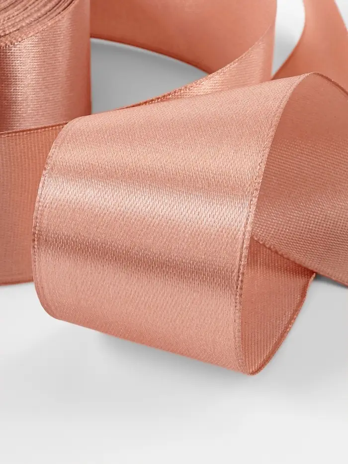 Лента заменяет упаковочную бумагу: достаточно нескольких витков вокруг коробки для элегантного акцента. В рукоделии её применяют для обтяжки обручей, создания текстильных цветов или декоративных бантов. Нейтральный бежевый оттенок сочетается с пастельными и насыщенными цветами.