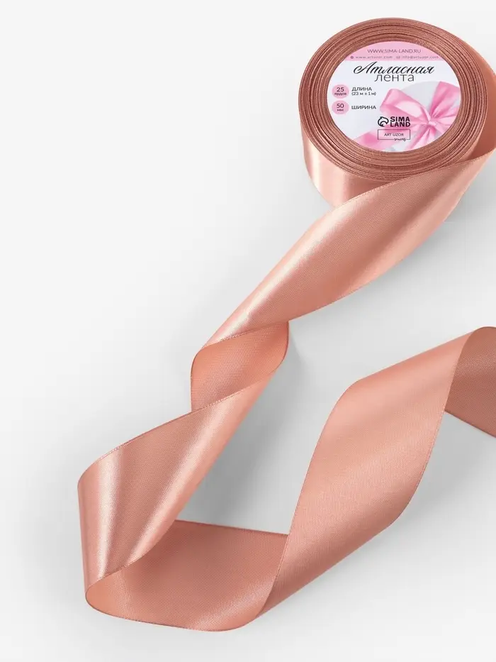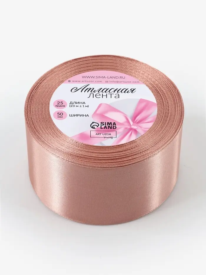 Бежевая атласная лента шириной 50 мм и длиной 23 метра — универсальный материал для декора, упаковки и творчества. Полиэстеровая основа придаёт прочность и мягкий блеск, а однотонная расцветка легко сочетается с любым стилем.