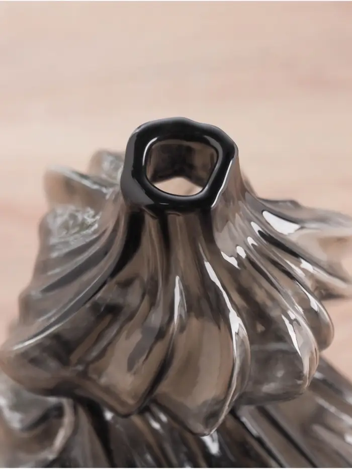 Настольная ваза в чёрном цвете станет стильным элементом декора, привнося нотку утонченности в любое пространство. Благодаря своему изящному дизайну, она отлично дополнит как классический, так и современный интерьер.