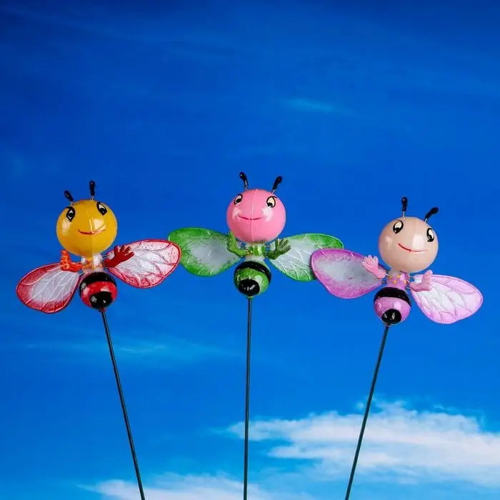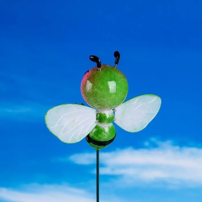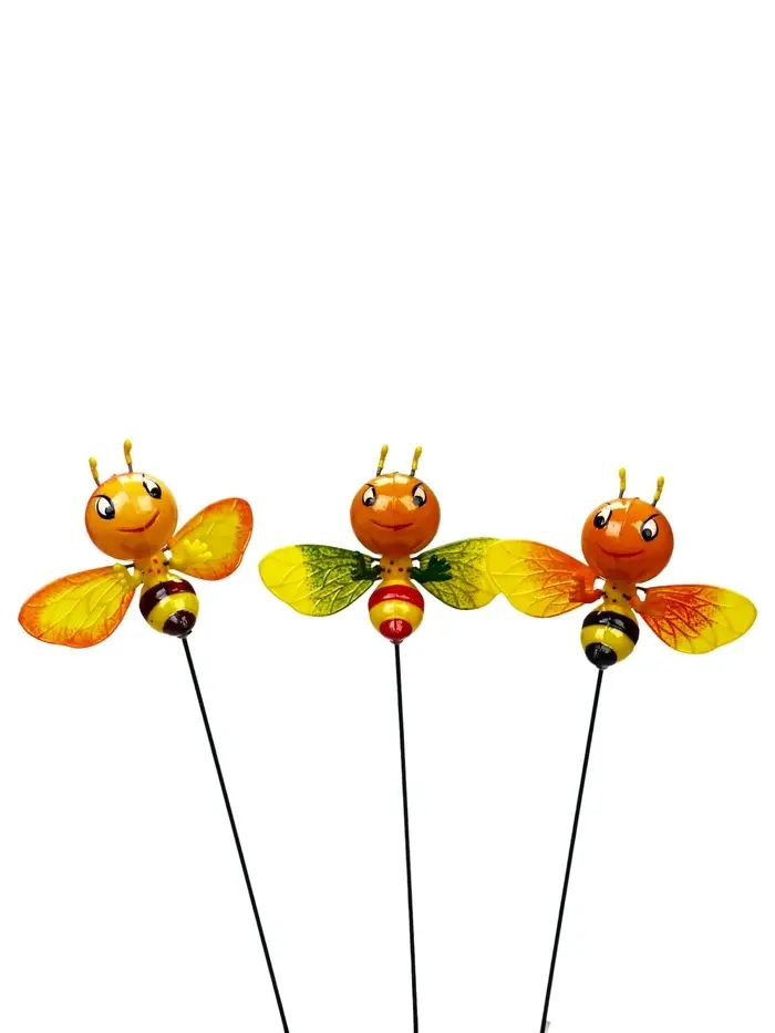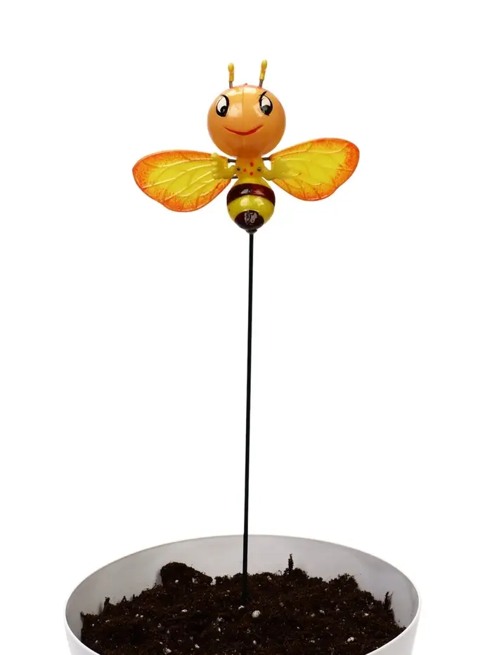 Сад в движении: пчёлка добавляет цветнику динамики. Она создаёт иллюзию, что над клумбой вот-вот зажужжит настоящая труженица сада. Такой декор напоминает о природном цикле опыления — даже когда растения ещё не цветут.