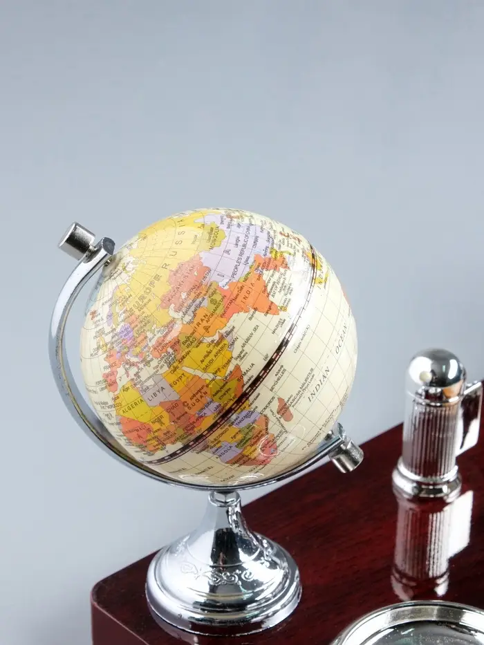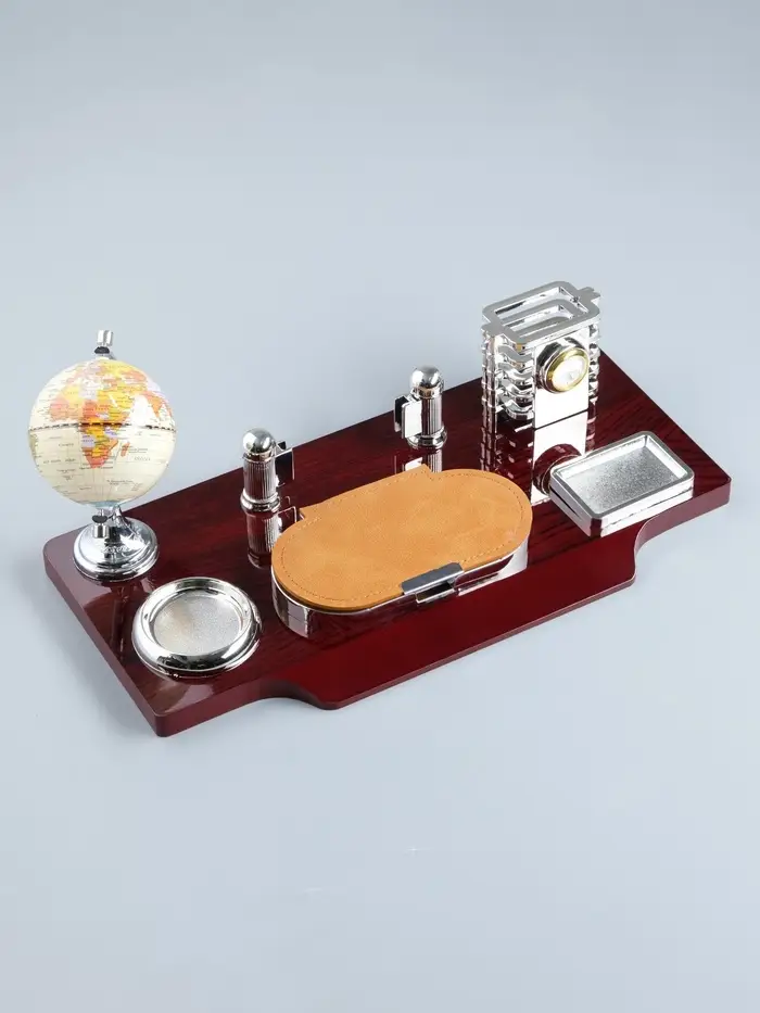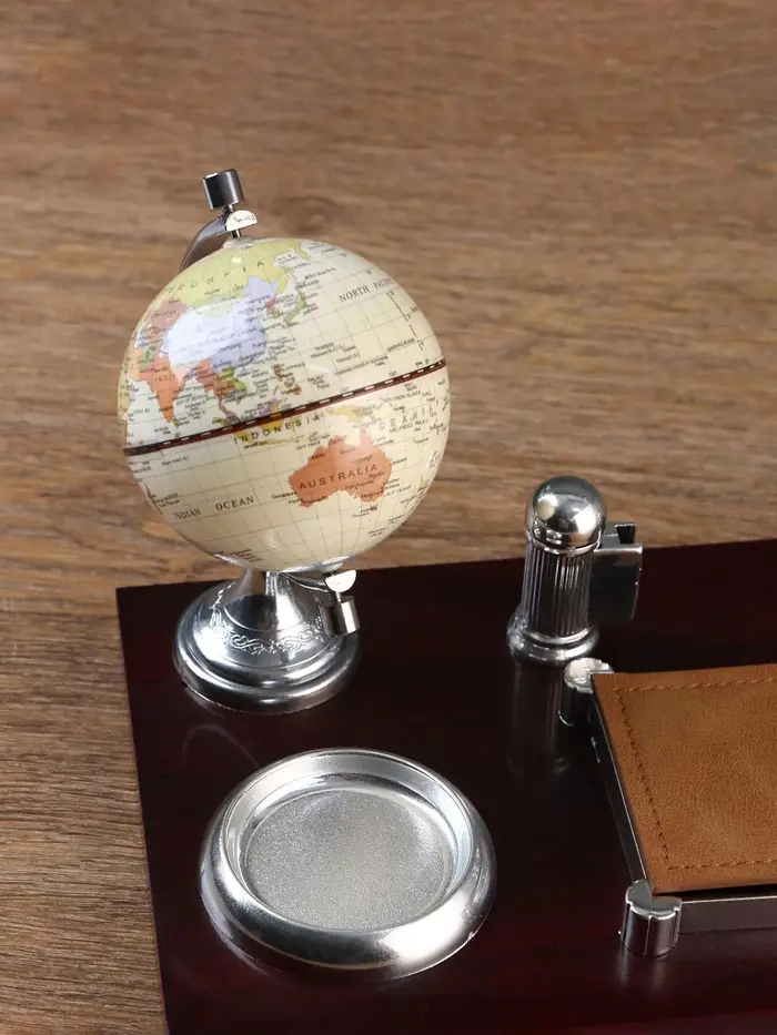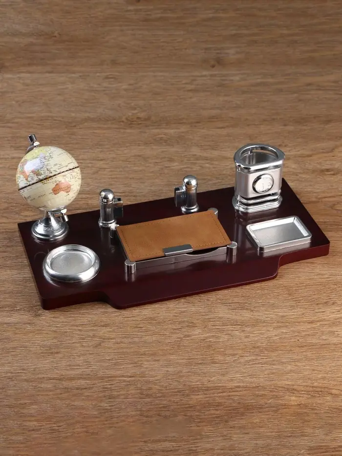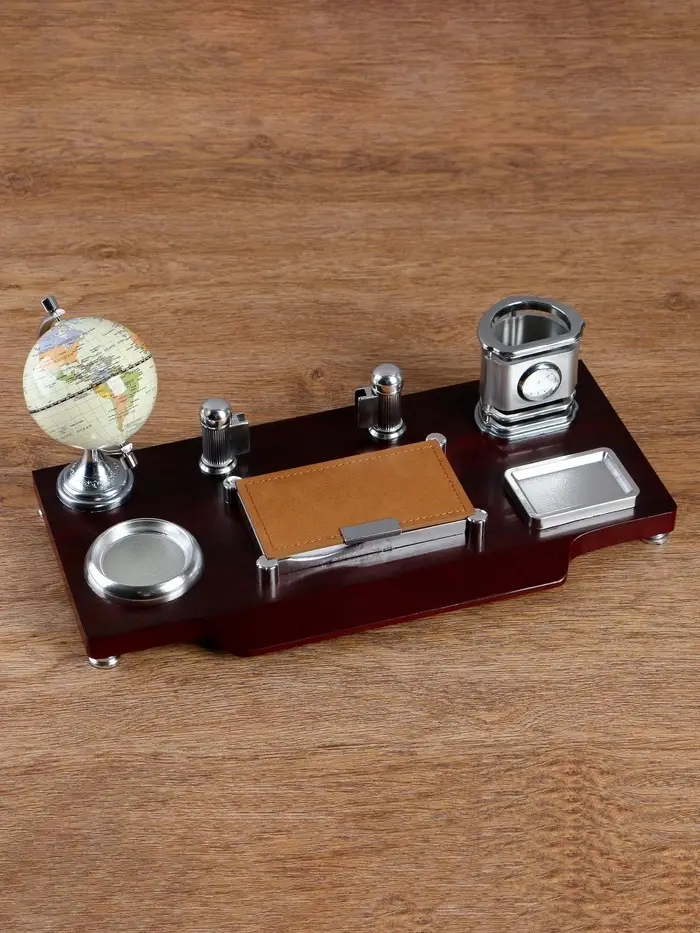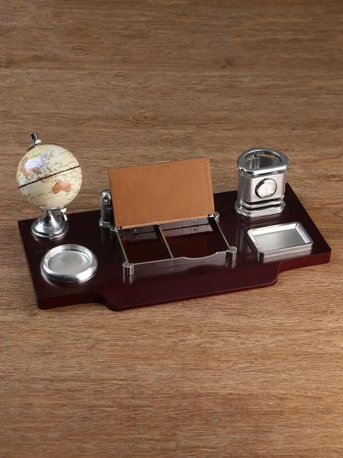 Набор настольный, органайзер 7 в 1, часы, лок для бумаги, визитница, глобус, подставка для печати, карандашница, 40×20×17, МИКС