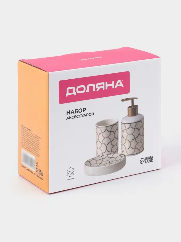 Набор аксессуаров для ванной комнаты Доляна «Сицилия», 3 предмета, дозатор 350 мл, мыльница, стакан