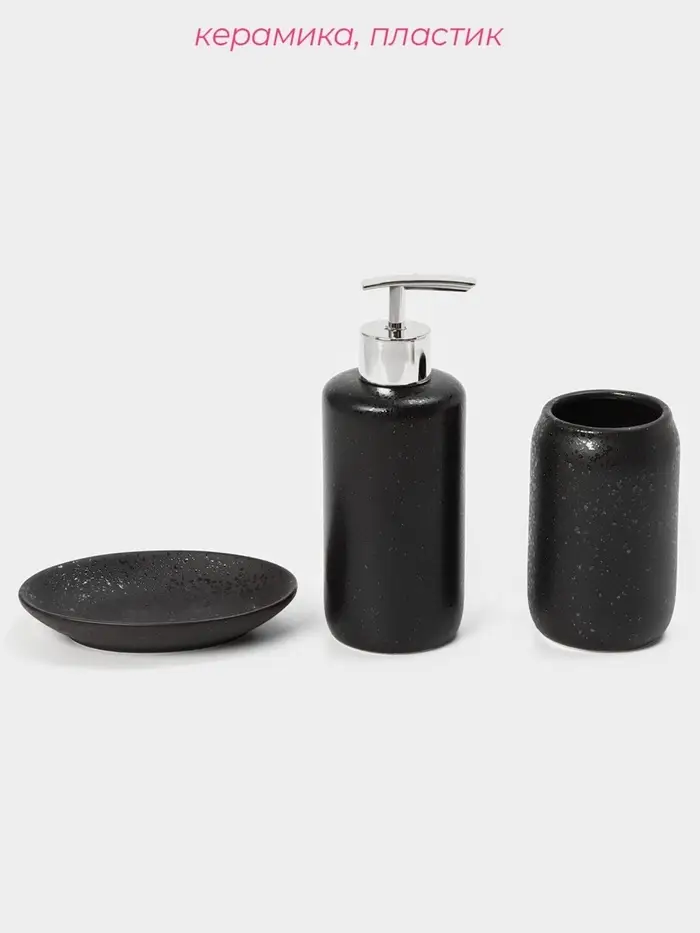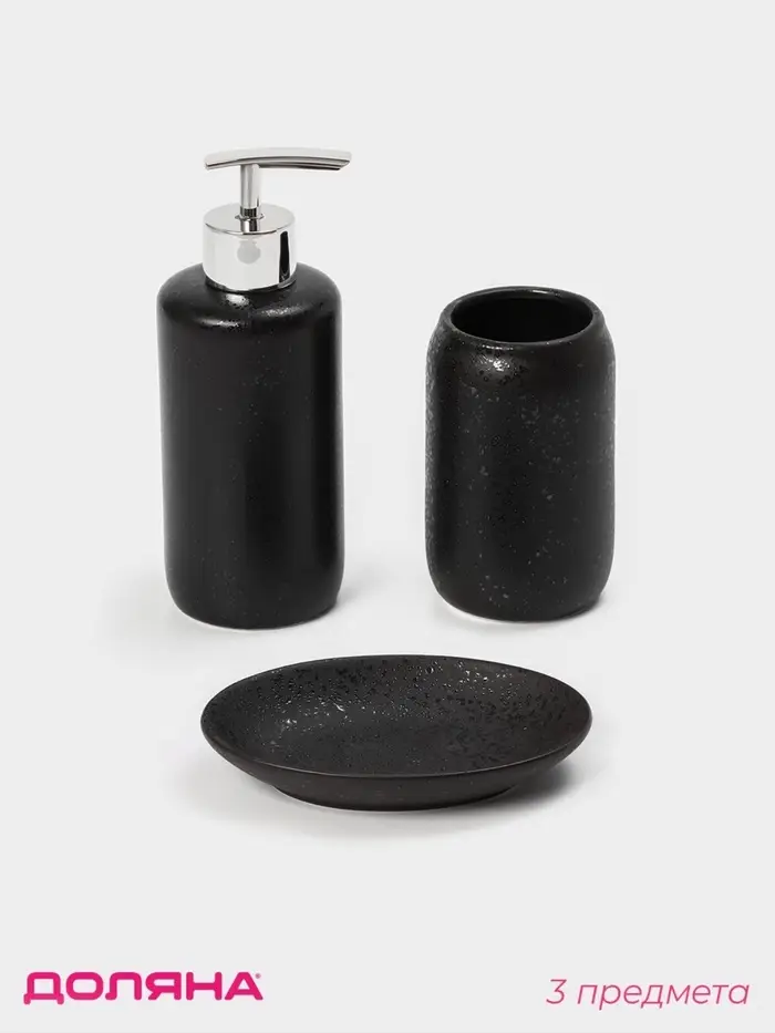 Набор аксессуаров для ванной комнаты Доляна «Венера», 3 предмета, дозатор 350 мл, мыльница, стакан, чёрный