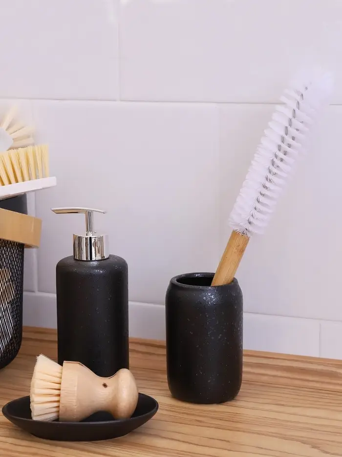- Набор аксессуаров значительно облегчит хранение ванных принадлежностей.