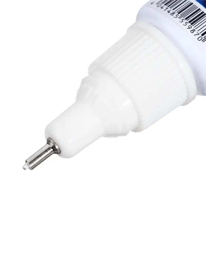 - Точный металлический наконечник обеспечивает аккуратное нанесение жидкости.