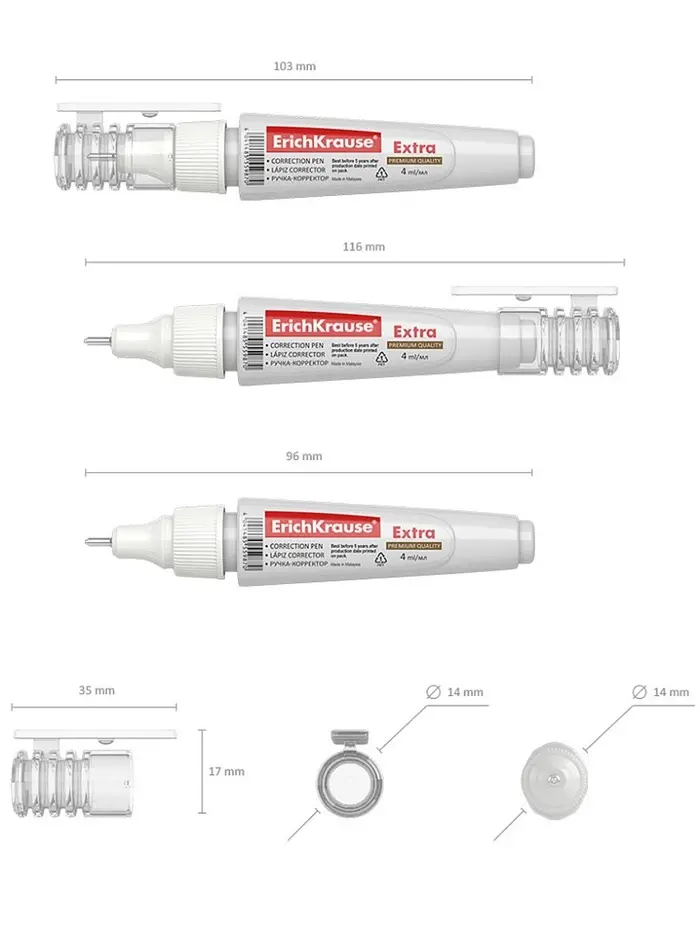 Ручка-корректор 4 мл, ErichKrause Extra, металлический наконечник, на основе растворителя