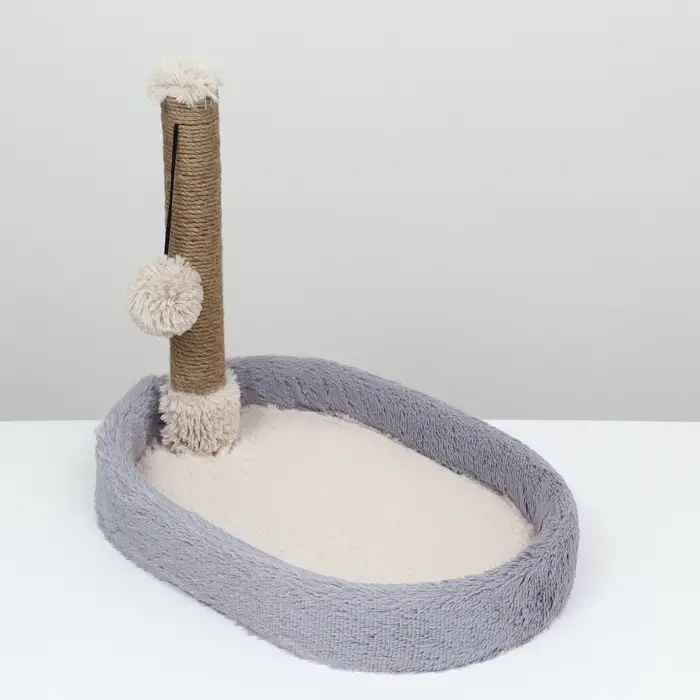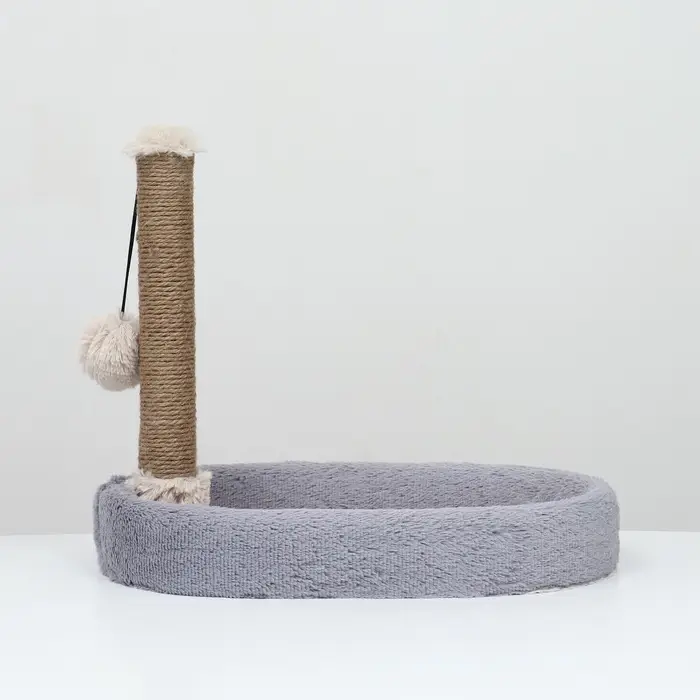 Лежанка с когтеточкой «Пижон», 55×36×47 см, овальная, серая