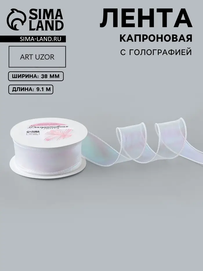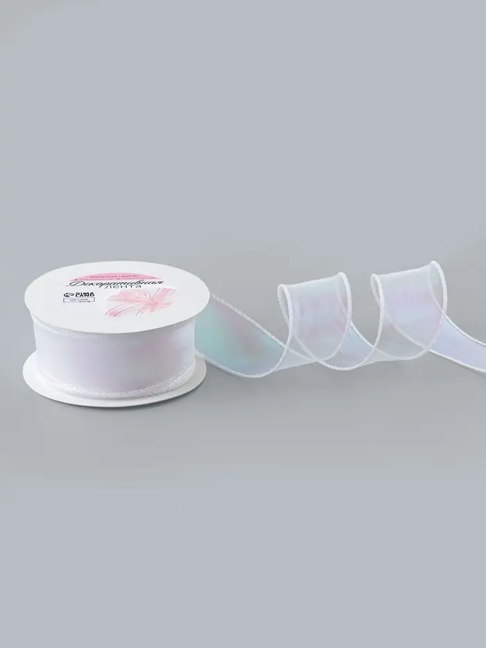 Лента капроновая «Волна», с радужным переливом, 38 мм, 9.1±0.5 м, белая