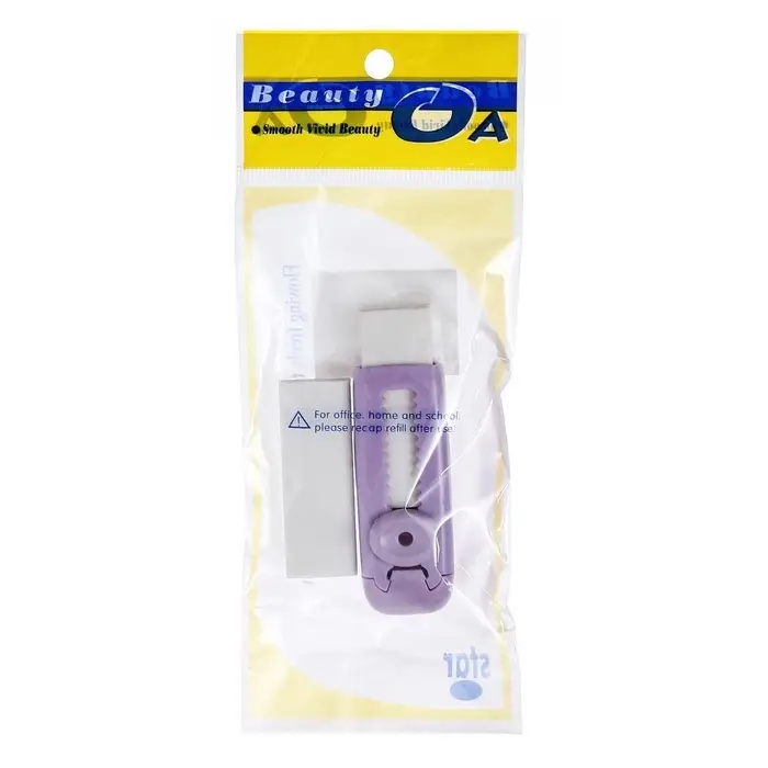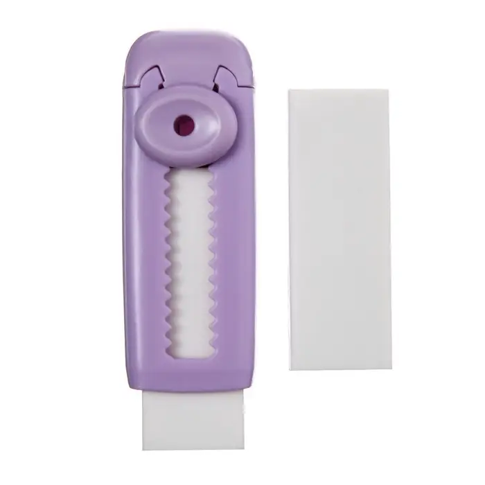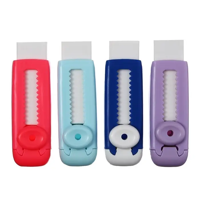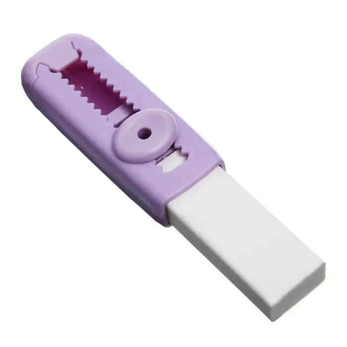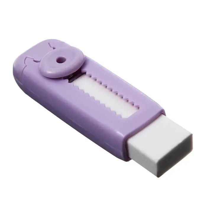 Ластик прямоугольный белый в пластиковом выдвижном держателе, запасной ластик, в блистере, МИКС