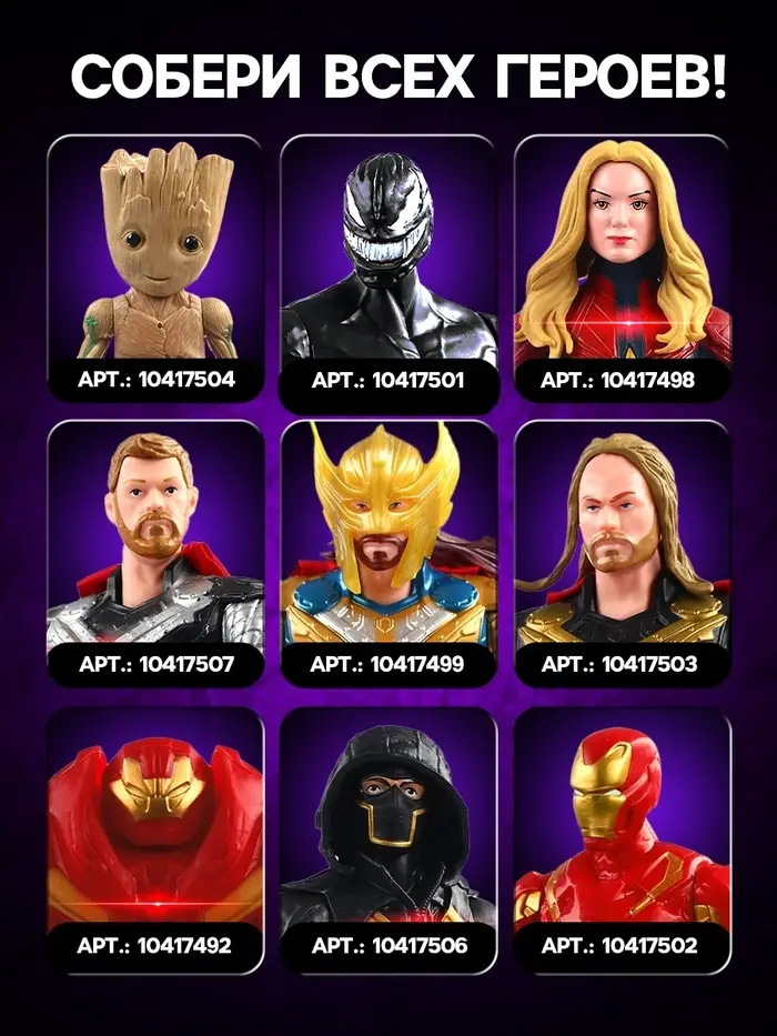 - Часть коллекции героев Marvel, вдохновляющей на сбор всей команды и противников.