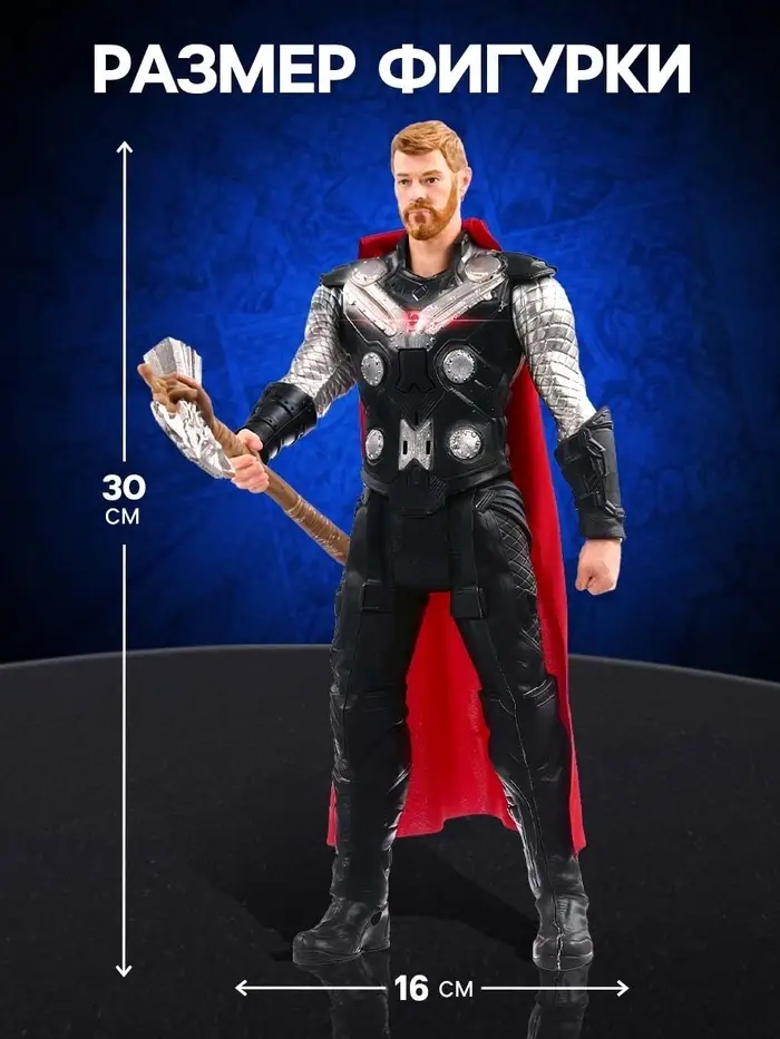 Встретьтесь с Тором — могущественным богом грома и неотъемлемым героем вселенной Marvel! Величественный воин с легендарным молотом Мьёльниром готов сразиться с любым врагом, чтобы защитить Асгард и Землю. Светящийся элемент на груди и подвижные руки добавляют фигуре реализма, делая игры ещё более увлекательными. С Тором каждый ребёнок сможет ощутить себя частью эпического противостояния добра и зла!