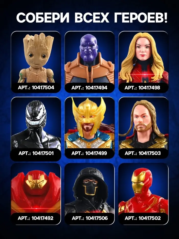 - Часть коллекционной серии героев Marvel, вдохновляющей на сбор всей команды Мстителей.