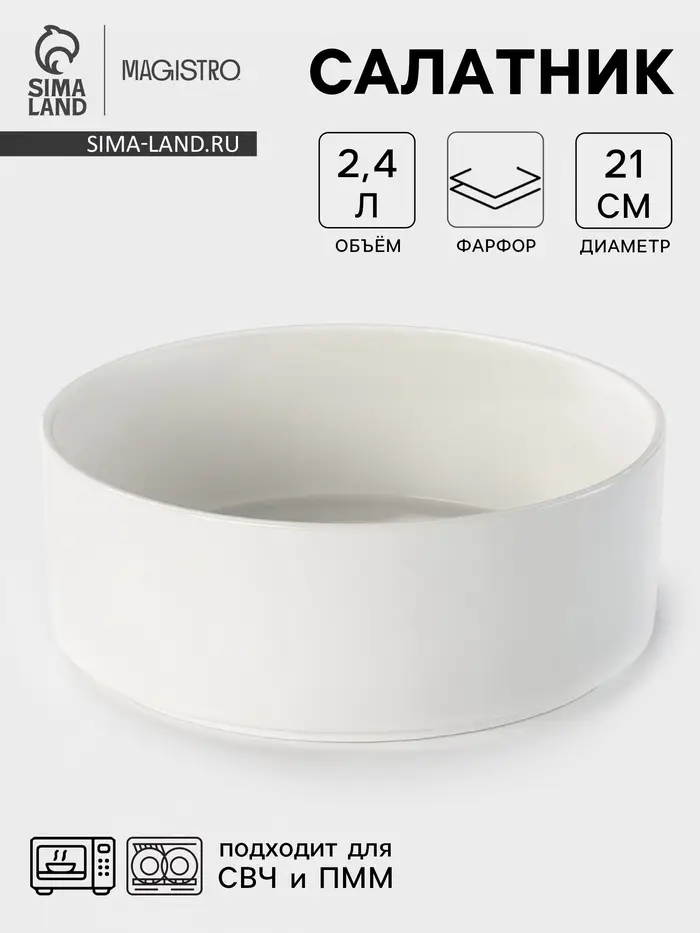 Салатник Magistro Modern, d=21 см, 2.4 л, фарфор, белый