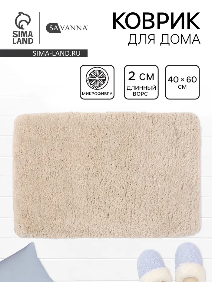 Коврик Savanna, 40×60 см, ворс 2 см, микрофибра, бежевый