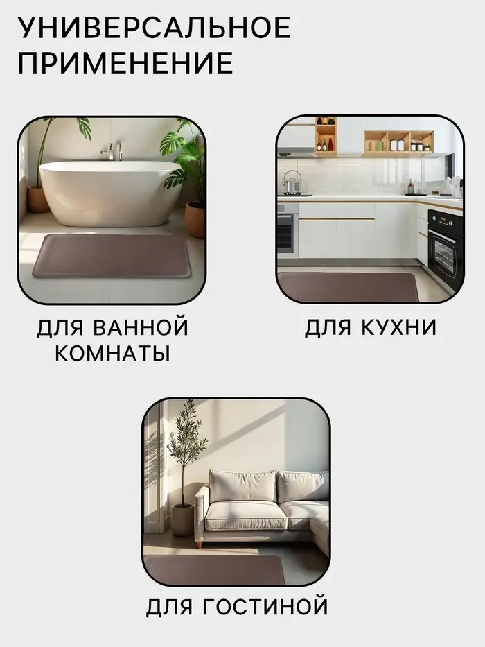 Этот коврик сочетает в себе функциональность и эстетику. Его легко поддерживать в чистоте, а противоскользящие свойства делают его безопасным для всей семьи. Благодаря нейтральному дизайну, он станет универсальным элементом декора, который подчеркнёт стиль вашего дома.