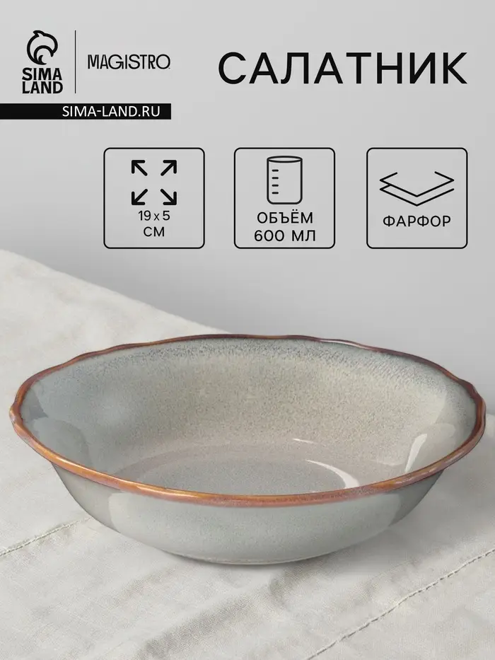 Салатник Magistro Vintage, 600 мл, 19×5 см, фарфор, серый