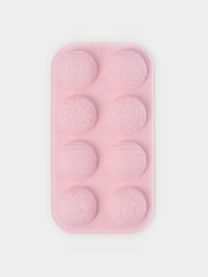 Форма для выпечки Доляна «Ассорти», силикон, 8 ячеек, 26×14×2.5 см (d=5 см), розовая