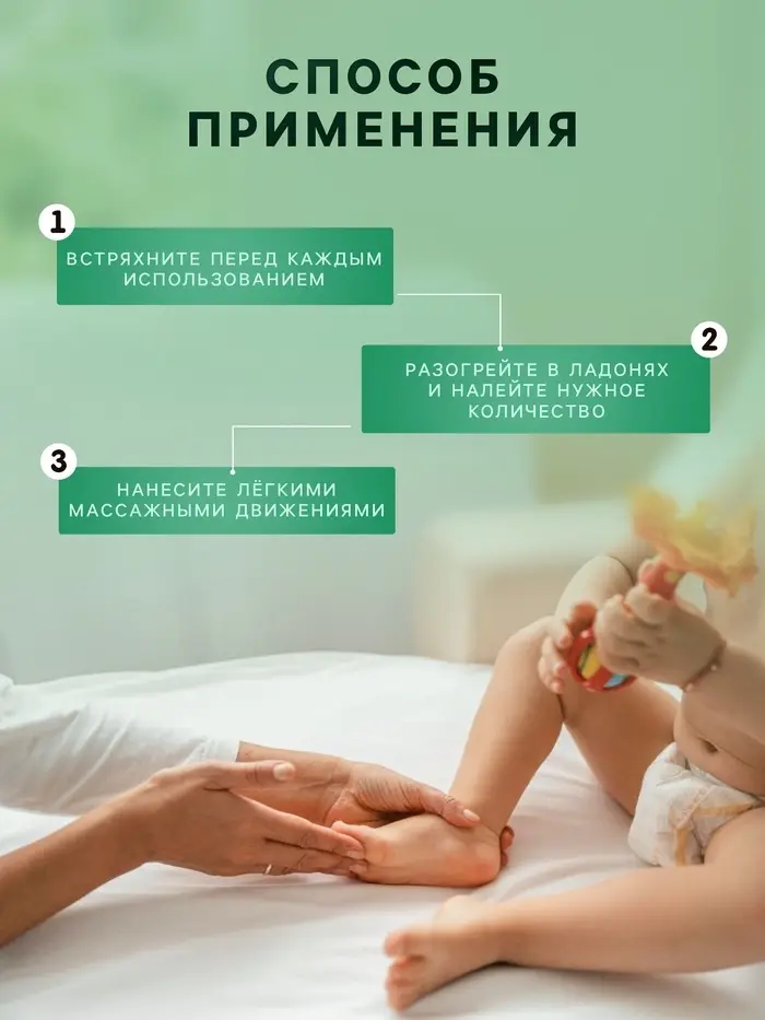 Масло для новорожденных подходит для детей с первых дней жизни 0+, а специально подобранный состав делает его безопасным и эффективным средством для регулярного использования.