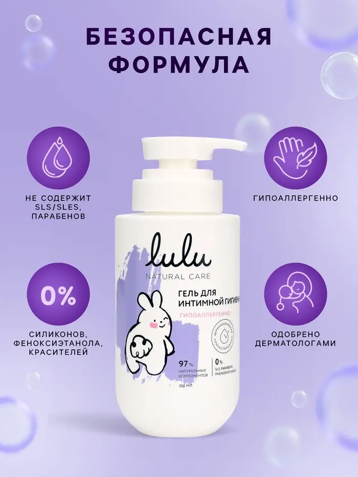 Гель для интимной гигиены детский LULU гипоаллергенно, 300 мл
