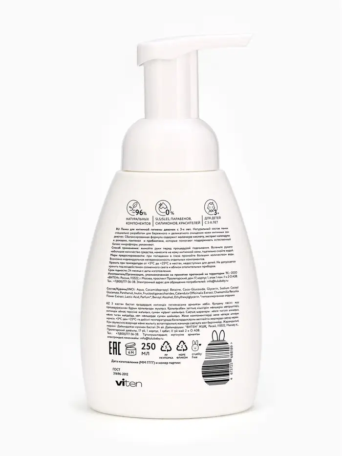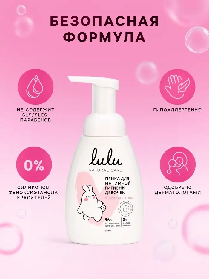 Пенка для интимной гигиены девочек LULU гипоаллергенно, 250 мл