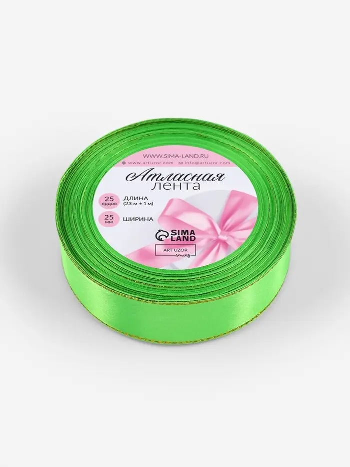 Лента атласная, с золотым люрексом, 25 мм, 23±1 м, ярко-зелёная №137