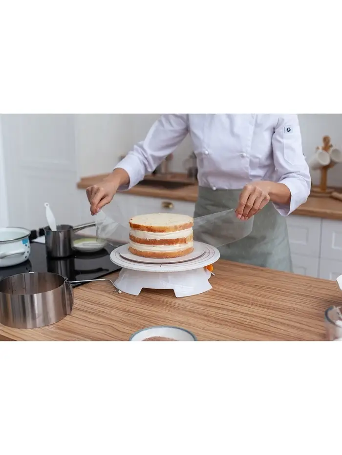 Максимизируйте эффективность вашей пекарни с нашей ацетатной плёнкой для упаковки тортов! Инвестируйте в этот экономичный вариант, позволяющий сэкономить время и деньги, не жертвуя качеством. Защитите все свои высокие творения с помощью этого большого рулона толстой плёнки и обеспечите профессиональный результат каждый раз. Отныне создавать сложные, многоуровневые торты – это проще простого благодаря нашей ленте для вертикальной стабилизации тортов, которая выделит ваши творения своей формой!