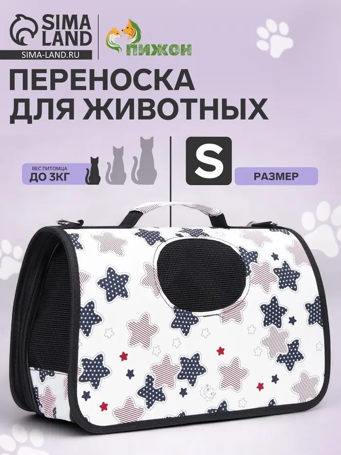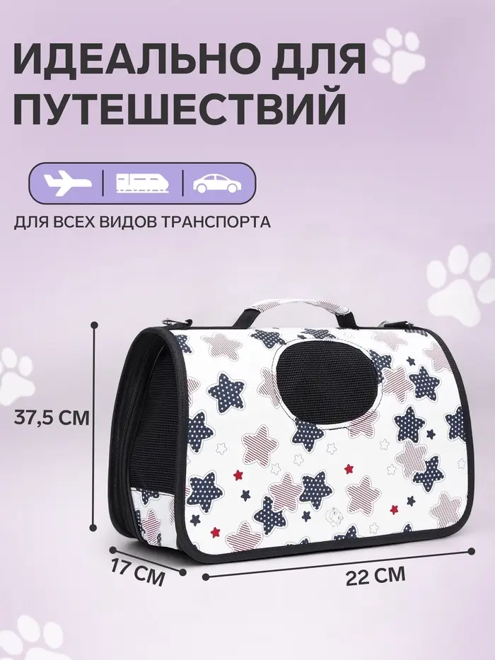 Сумка - переноска «Звёзды», размер S, 37.5×17×22 см, каркасная, белая