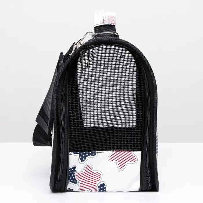Сумка - переноска для животных «Лапки Happy», размер S, 37.5×17×22 см, чёрная