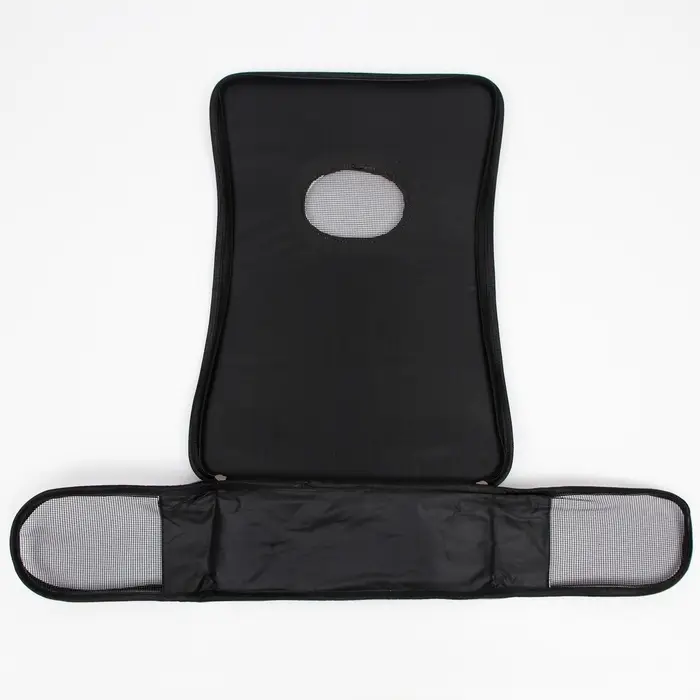 В дно переноски вшит плотный картон, который обеспечивает твердую основу и защищает животное от вибраций и ударов. Прозрачная сетка позволяет питомцу наблюдать за окружающим миром и получать достаточно свежего воздуха.