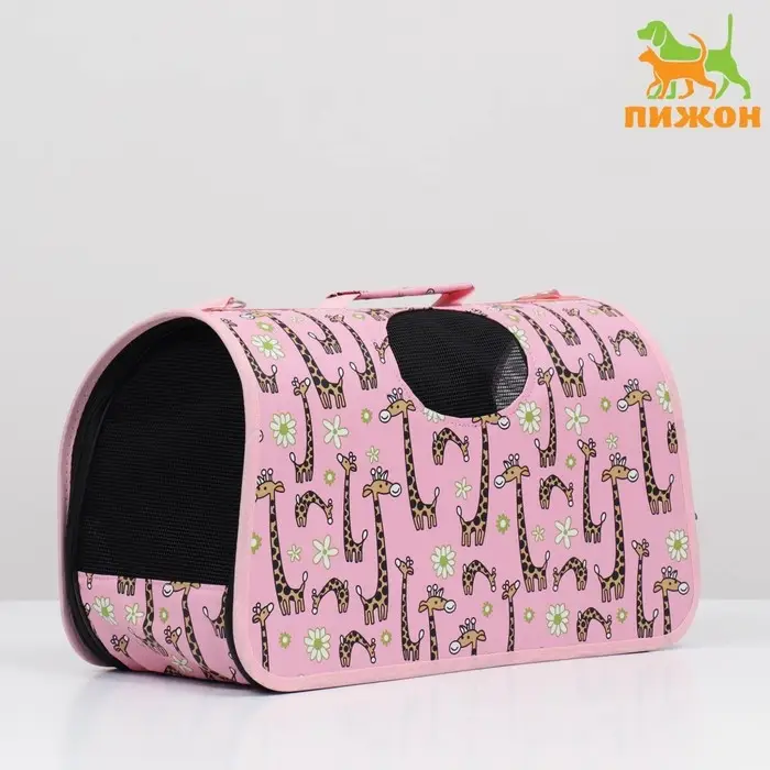 Сумка - переноска «Жирафы», размер S, 37.5×17×22 см, каркасная, розовая