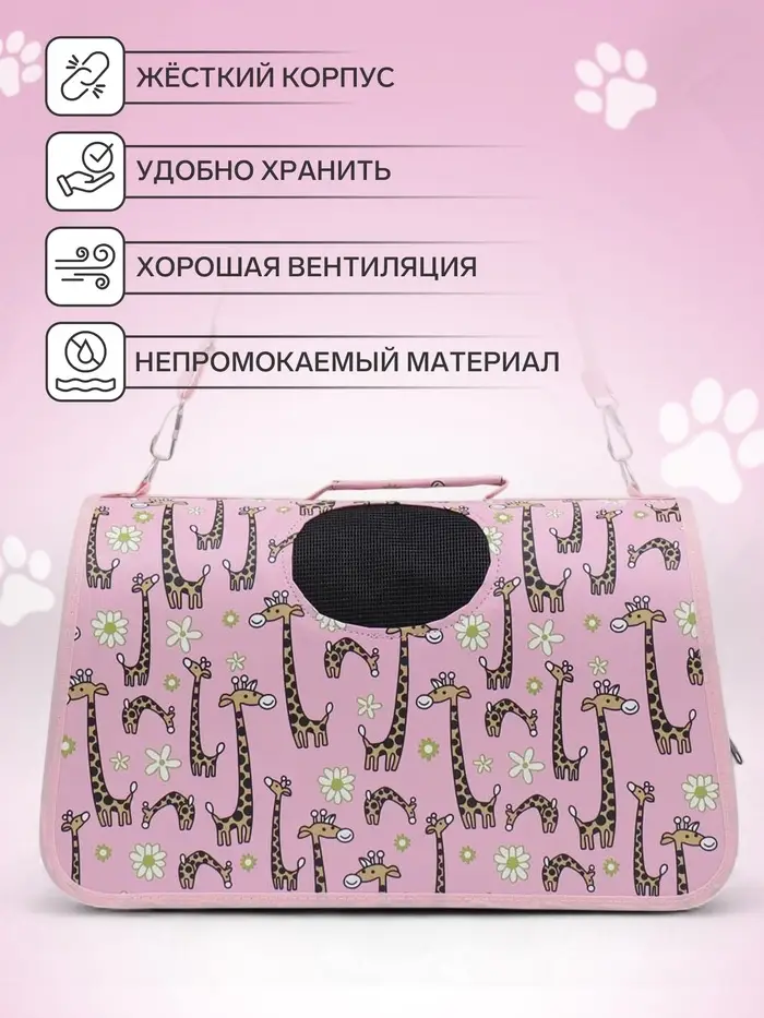 Каркасная сумка-переноска с рисунком жирафов — это удобное и безопасное решение для транспортировки небольших питомцев. Идеально подходит для кошек и маленьких собак. Компактные размеры и продуманная конструкция делают её незаменимым аксессуаром для поездок, визитов к ветеринару или прогулок.