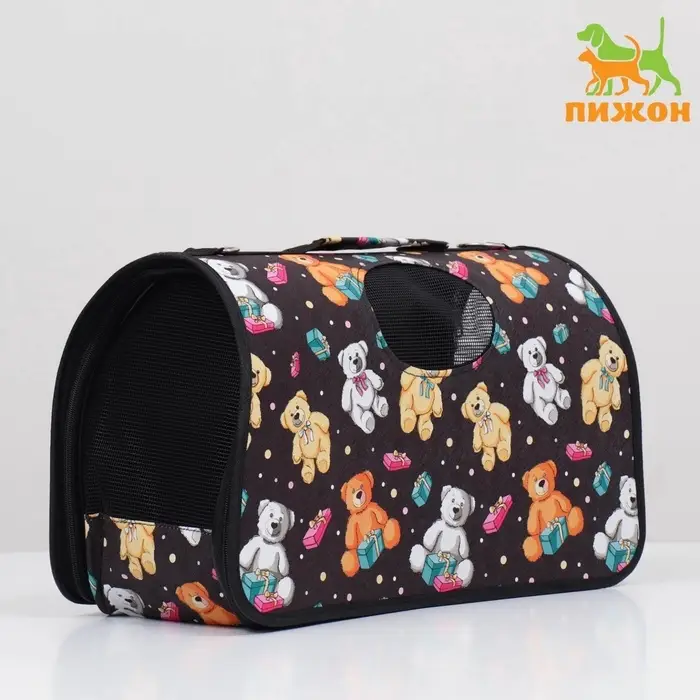 Сумка - переноска «Плюшевые медведи», размер S, 37×15×22 см, каркасная