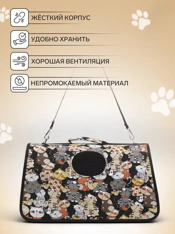 Сумка - переноска каркасная «Кошки», размер S, 37.5×17×22 см