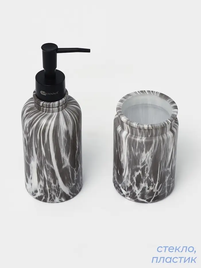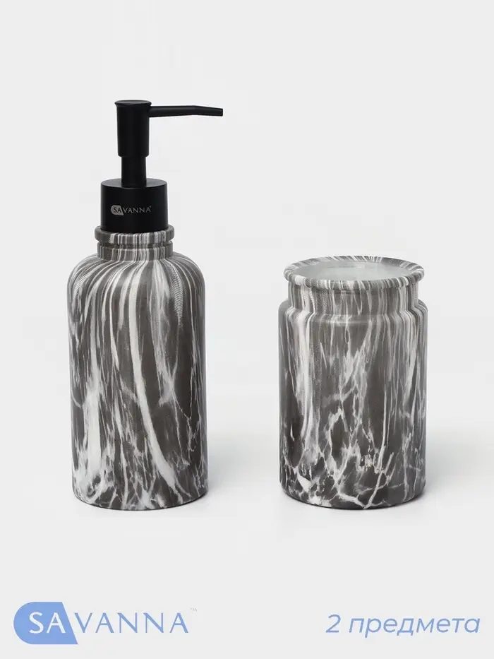 Набор аксессуаров для ванной комнаты SAVANNA, 2 предмета, дозатор, стакан, серый