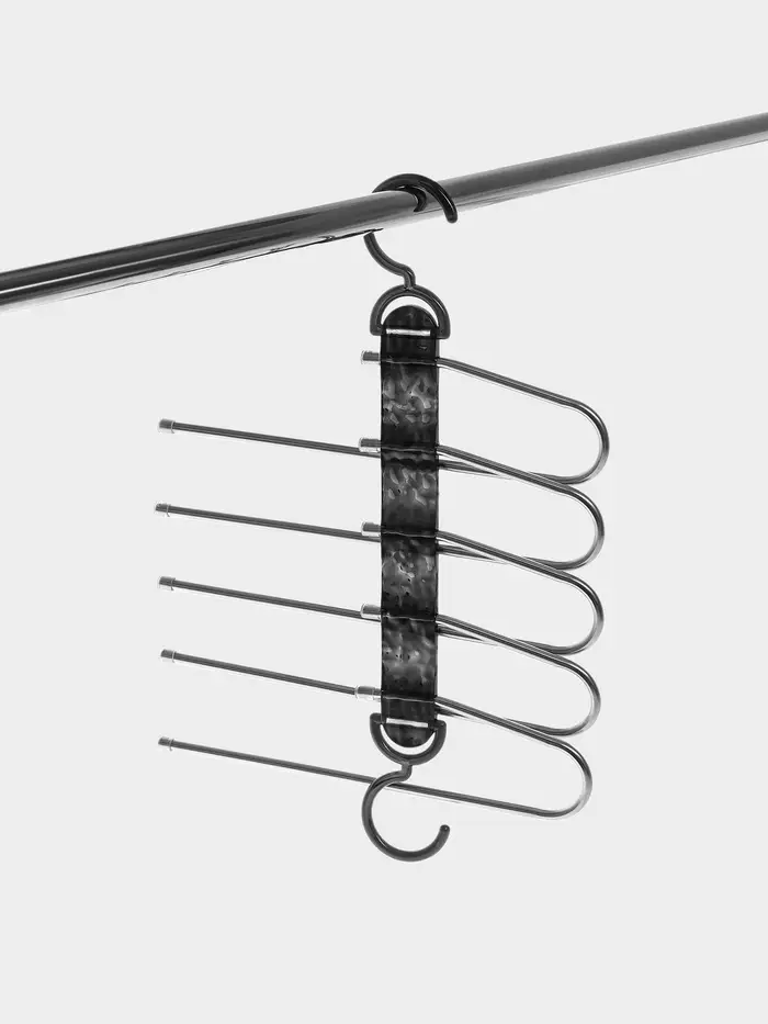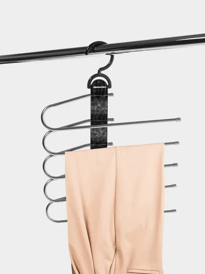 Многоуровневая конструкция помогает эффективно использовать пространство в шкафу, а металлический каркас выдерживает даже плотные ткани. Вешалка не занимает много места, но при этом позволяет хранить до 5 пар брюк или юбок одновременно. Это решение для тех, кто ценит порядок и стиль в деталях.