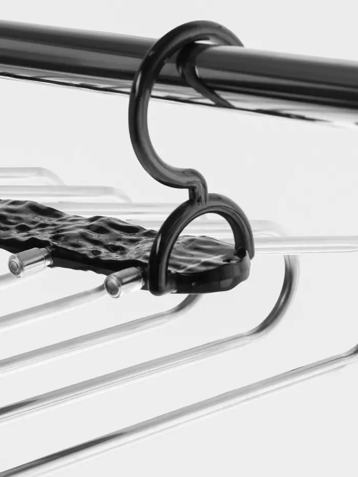 Многоуровневая вешалка для брюк — это практичное решение для хранения и организации вашего гардероба. Её прозрачный чёрный дизайн сочетается с любым интерьером, а металлическая конструкция обеспечивает долговечность и устойчивость. Вешалка идеально подходит для хранения брюк, юбок и других предметов одежды, сохраняя их форму и порядок.