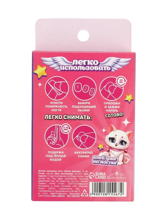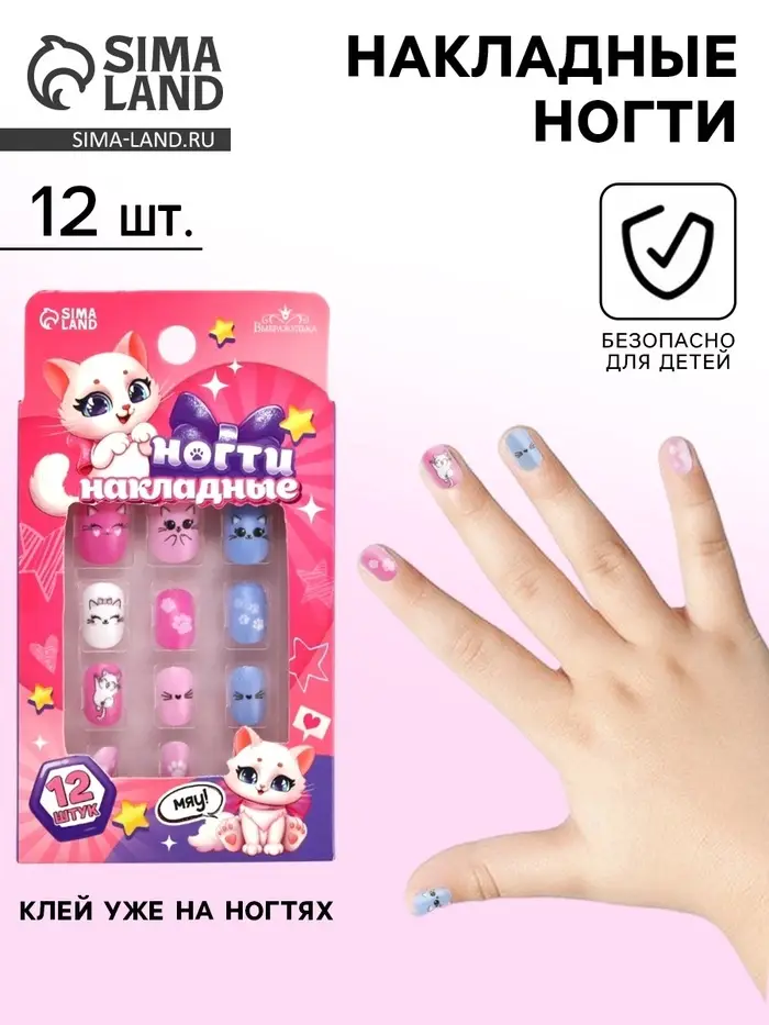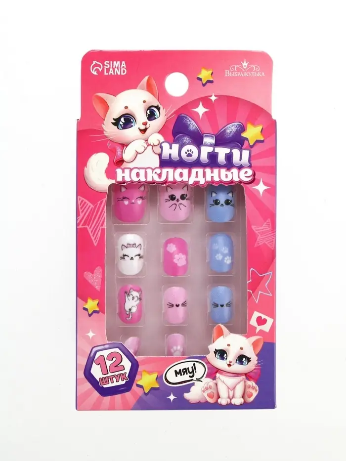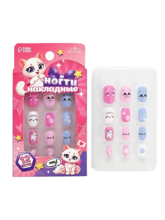 Накладные ногти детские «Милая кошечка», 12 шт.