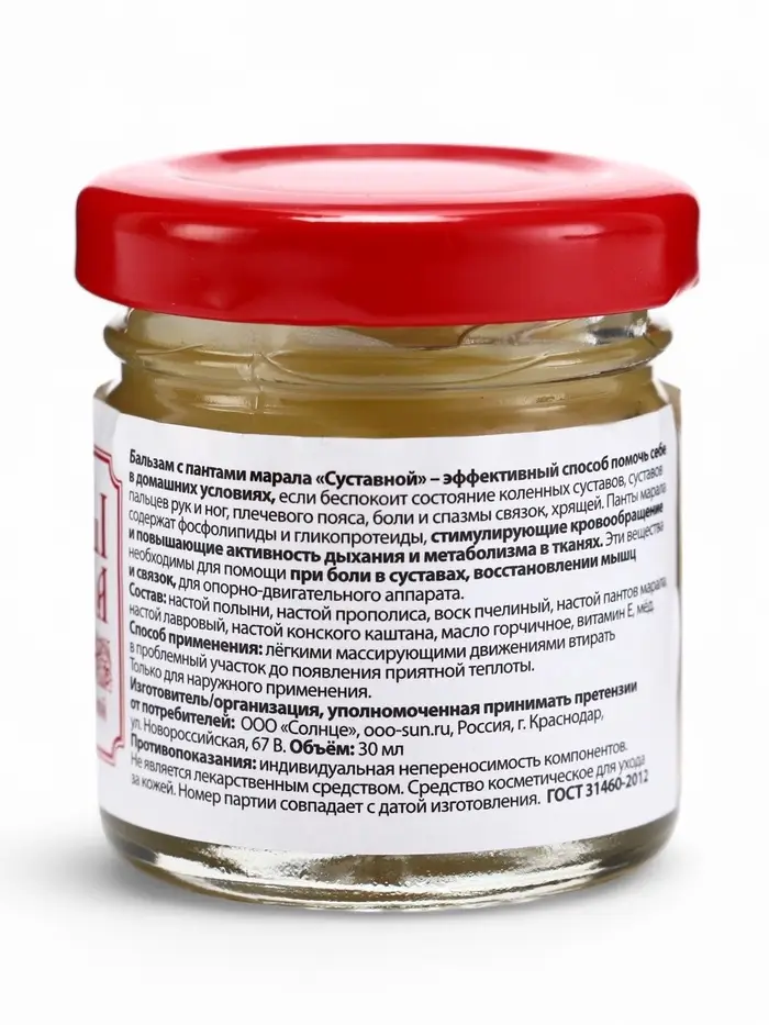 Бальзам с пантами марала «Суставной» эффективный способ помочь себе в домашних условиях, если беспокоит состояние коленных суставов, суставов пальцев рук и ног, плечевого пояса, боли и спазмы связок, хрящей.Как утверждают народные лекари панты марала - это прекрасное тонизирующее средство, укрепляют кости, отлично справляются с проблемами с позвоночником, болями в суставах, улучшают метаболизм, избавляют от нервного напряжения, укрепляют кости и сухожилия, улучшают работоспособность, ускоряют заживление ран, доставляют в организм кальций и йод, обладают антисептическими свойствами, нормализуют артериальное давление. Панты марала содержат фосфолипиды и гликопротеиды, стимулирующие кровообращение и повышающие активность дыхания и метаболизма в тканях. Эти вещества необходимы для помощи при боли в суставах, восстановлении мышц и связок, для опорно-двигательного аппарата. Целебный пантовый бальзам эффективный помощник при растяжениях, вывихах, переломах, ушибах, остеохондрозе, артрозе, артрите, проблемах с позвонками. Алтайский бальзам воздействует на клеточном уровне, помогая восстановить кровоснабжение, усилить приток крови к обрабатываемой зоне, перенести основные биологически активные действующие компоненты вглубь тканей. Это стимулирует обменные процессы, помогает улучшить питание мышц и суставов.